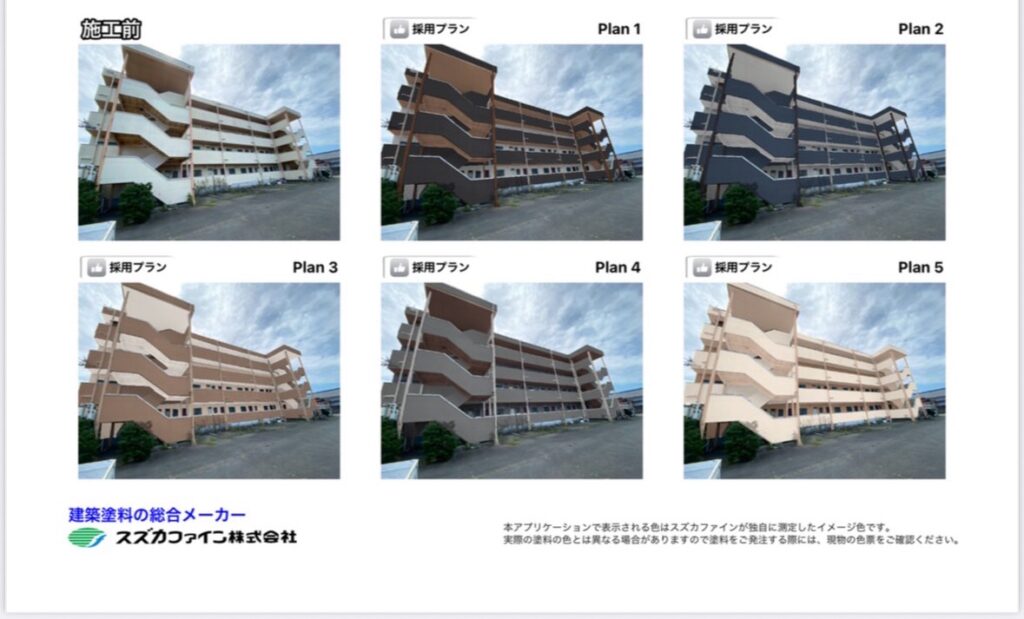 茨城県内の築25年のマンションで実施した外壁塗装と屋上防水工事では、工事前にカラーシミュレーションを行いました。